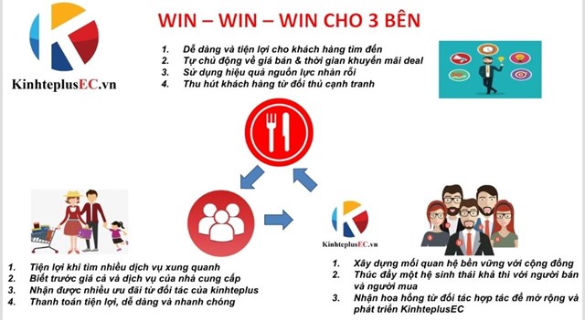 Sàn KinhteplusEC.vn rất dễ dàng và tiện lợi cho khách hàng tìm đến; Tự chủ động về giá bán và thời gian khuyến mãi deal; Sử dụng hiệu quả nguồn lực nhàn rỗi; Thu hút khách hàng; Tiện lợi khi tìm nhiều dịch vụ xung quanh; Biết trước giá cả và dịch vụ của nhà cung cấp; Nhận được nhiều ưu đãi từ đối tác; Thanh toán tiện lợi, dễ dàng và nhanh chóng; Xây dựng mối quan hệ bền vững với cộng đồng; Thúc đẩy một hệ sinh thái khả thi với người bán và người mua; Nhận hoa hồng từ đối tác hợp tác để mở rộng và phát triển.